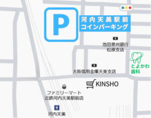 医院併設の駐車場が満車の場合は、提携コインパーキング・三井のリパーク「河内天美駅前駐車場」をご利用ください。